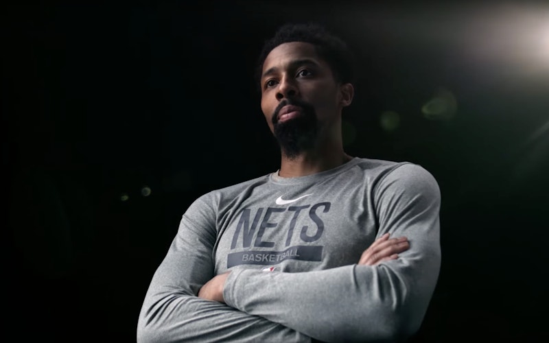 In contrast, consider the establishing shots used for an interview with Spencer Dinwiddie, who toiled for years in the G League before becoming a legit and well-paid NBA contributor. Dinwiddie appears on camera as larger than life, his body taking up most of the right side of the screen, while a natural orb of light shines above him. In cinephile terms, this light is called a lens flare. Lens flares can occur intentionally or otherwise and are often employed for a sense of gravitas or realism. For religiously minded viewers, the lens flare—a glow of light above the head of those pros who have made the ascent to the NBA—evokes a heavenly glory.