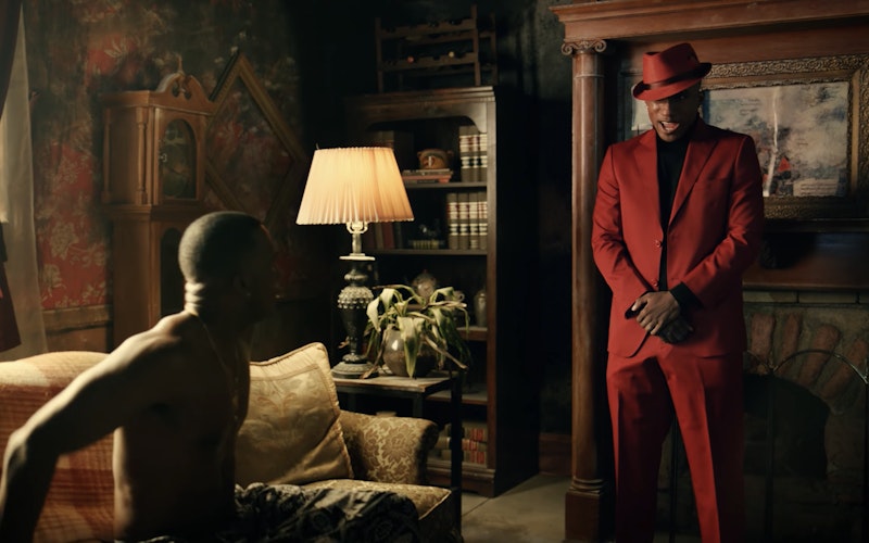 The video begins in the place where most people find themselves overwhelmed by their thoughts: their bedroom. The irregular cadence of a windup music box serves as the melody until a more rhythmic beat signals the appearance of Hopsin’s inner thoughts. This “other” Hopsin is dressed in a suave colored suit and has an eerily calm demeanor compared to the confused Hopsin, who has been stirred awake in his bed. When the alter ego says “I’ve been with you since a teen, f***ing you up mentally,” he’s following the pattern that many of our thoughts take—building rapport while simultaneously tearing us down. People wrestle with certain thoughts for so long that they start to identify with them, even if those thoughts are destructive.