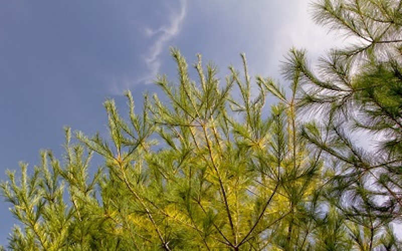 When someone mentioned the benefits of white pines recently at an ecological design course I was taking in California, my ears perked up. I’d just coordinated the purchase of 100 white pine seedlings before I departed home, to be planted along the road at the retreat center where I work, joining other white pines as a barrier against noise and visual clutter. With limited time to research anything extracurricular during the course, I scribbled on the bottom right corner of one of nearly 200 pages of notes: white pines — medicine, symbolism.