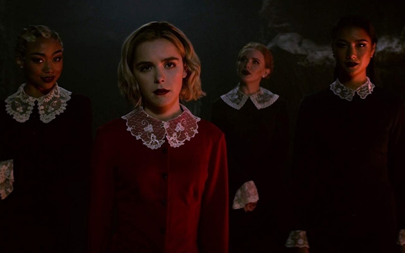 Much like Riverdale, another Archie comic book adaptation, Chilling Adventures of Sabrina strikes a decidedly darker tone than previous iterations of Archie characters. While the Sabrina of the early comics (and the late 1990s family sitcom) lived a relatively mundane suburban life in spite of her supernatural powers, 2018’s Sabrina (played by Mad Men’s Kiernan Shipka) occupies a much gloomier world full of sinister dealings. Case in point: Sabrina’s aunts Hilda and Zelda, along with her other witchy cohorts, are devout worshippers of Satan. (Yes, that Satan.)