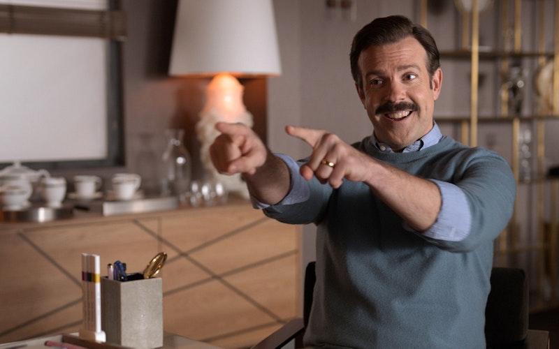 The titular Ted (Jason Sudeikis) is an American college football coach who is hired to coach a British football (that is, soccer) team. Ted is a wide-eyed, enthusiastic fish out of water. He readily admits, to a packed press conference, that he knows nothing about soccer or British culture. He asks the very players he coaches for clarification about basic rules and strategies. He greets every person he meets—from the driver who greets him at the airport to the football club's towel boy to his players to those cannibalistic reporters to his boss—with arms open, both literally and metaphorically.